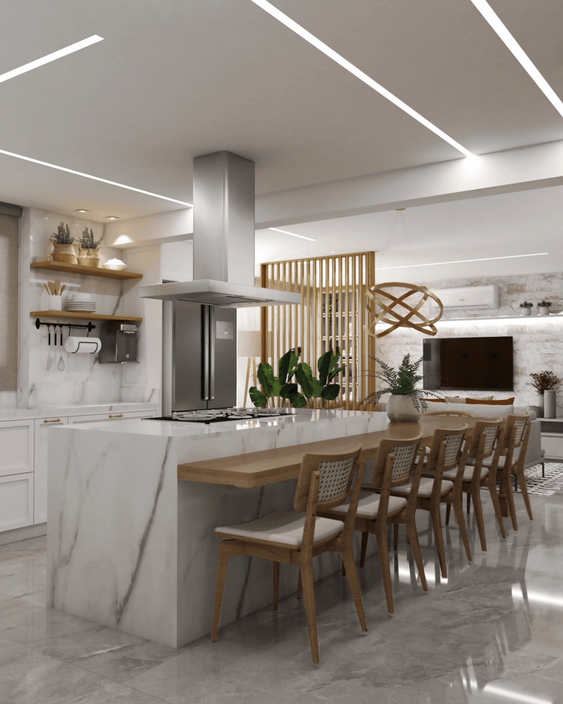 Nosso Projeto de Interiores inclui Caderno executivo com as medidas especificadas dos móveis planejados, detalhamento de marcenaria, detalhamento de gesso e luminotécnico, detalhamento de paginação de piso, pintura e revestimentos, 3D e imagens renderizadas ultra realistas pra já visualizar do jeito que você sempre sonhou.